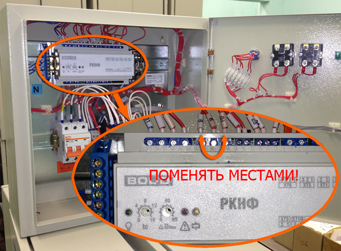 Во избежание перегрева РКНФ (модификация с двумя подстроечными резисторами) во время продолжительной работы ШКП-4, ШКП-10, ШКП-18, ШКП-30, ШКП-45, ШКП-75, ШКП-110, выпущенных с августа 2012г. по январь 2013г., необходимо проверить подключение проводов с маркировкой №8 и №10, входящих в колодку ХТ5 изделия РКНФ. Если провод №8 присоединен к клемме ХТ5:3, а провод №10 к клемме ХТ5:1, необходимо поменять их местами, а так же указать это в схеме соединений, наклеенной на внутренней стороне крышки ШКП.