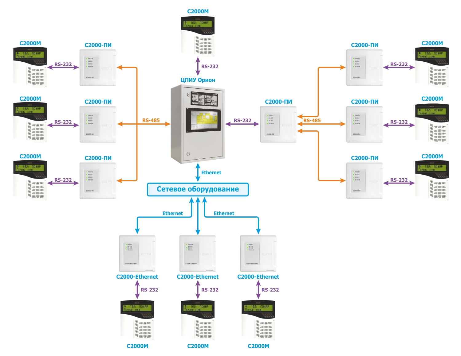 | Количество контролируемых элементов (ШС, адресных извещателей, выходов), не более | 30 000 | |