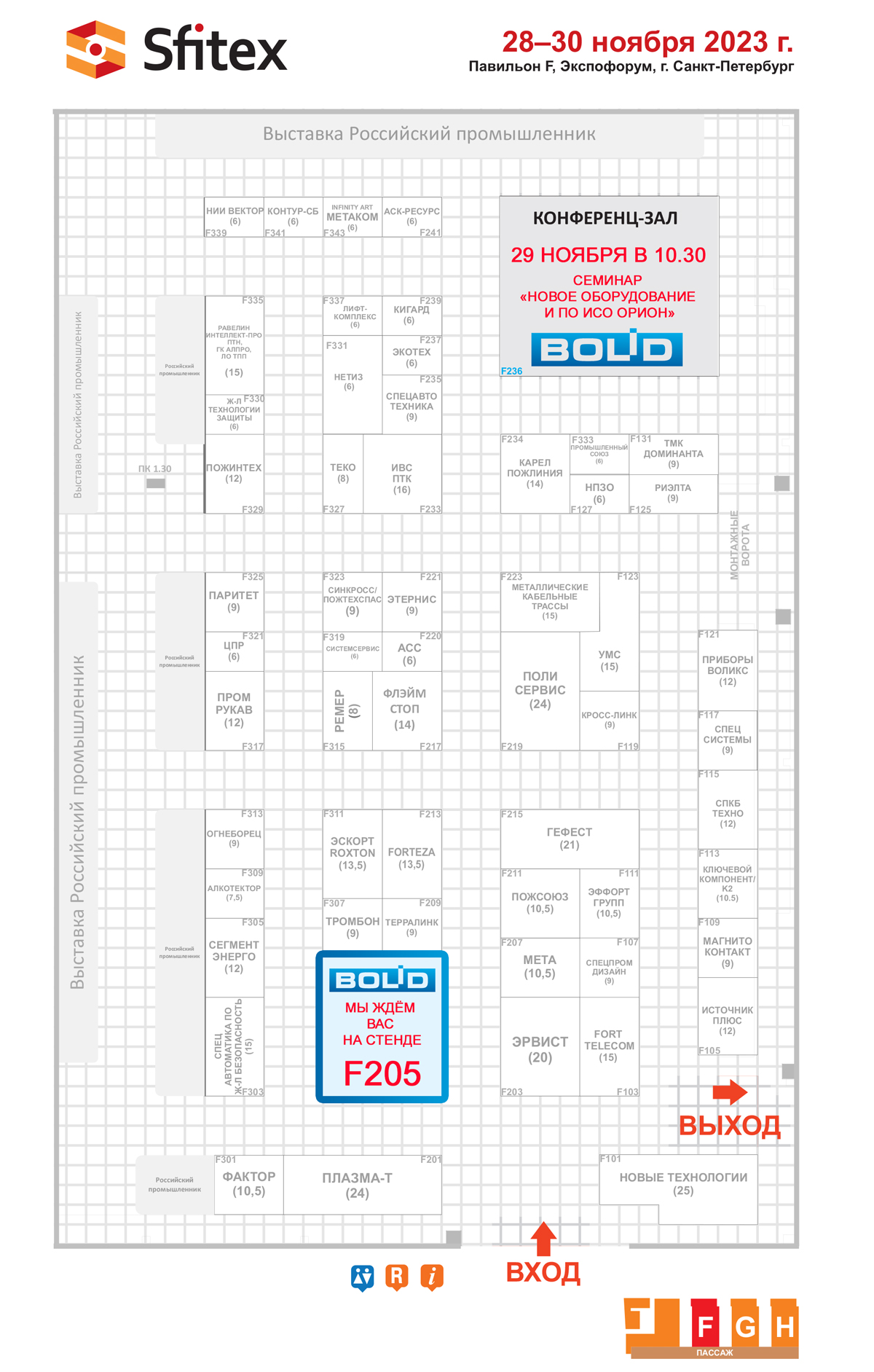 Приглашаем Вас посетить стенд F205 компании «Болид» на 31-й Международной выставке технических средств охраны и оборудования для обеспечения безопасности и противопожарной защиты «Sfitex 2023», которая будет проходить с 28 по 30 ноября 2023 г. в КВЦ «Экспофорум» в г. Санкт-Петербурге, павильон F.