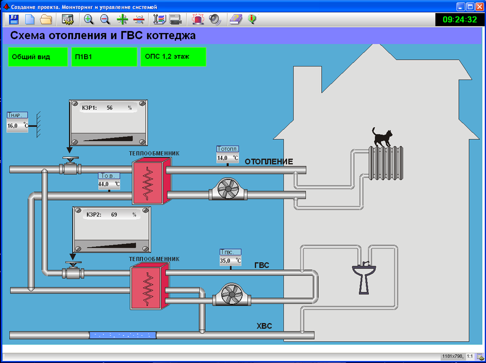 • диспетчеризация, управление вентиляцией, тепловым пунктом, системами ГВС, ХВС, освещением и различными инженерными системами объекта;