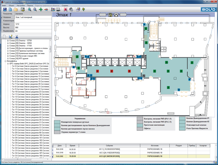 • интегрирование в SCADA Алгоритм охранно-пожарных систем и систем контроля доступа: АРМ «С2000», АРМ «Орион», АРМ «Орион Про» и АРМ «Посетитель». Привязка к мнемосхеме требуемого плана помещения и автоматический импорт планов со всеми элементами изображения из АРМ «С2000» и АРМ «Орион», возможность использования векторных планов с АРМ «Орион» про для большей четкости и детализации изображения. Мониторинг охранно-пожарной обстановки, управление шлейфами и реле системы с мнемосхем системы Алгоритм. Вывод по событиям контроля доступа информационных карточек по персоналу и посетителям;