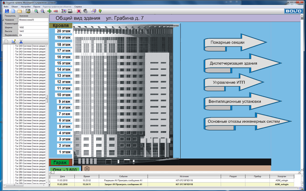 • формирование единой интеллектуальной системы мониторинга и управления объектом, включая охранно-пожарные системы, контроль доступа, учет ресурсов и различные сервисные системы обслуживания объекта;
