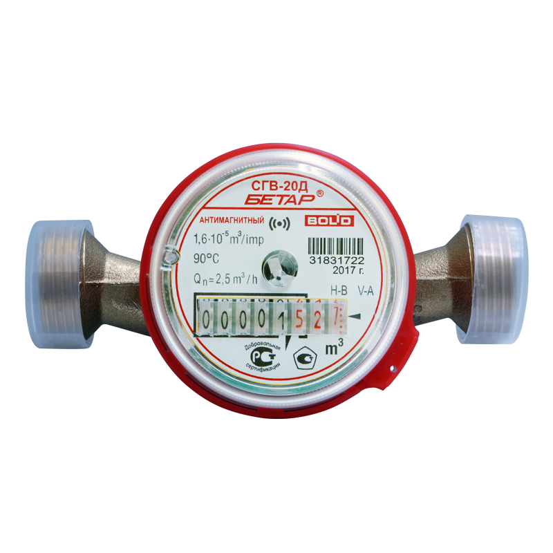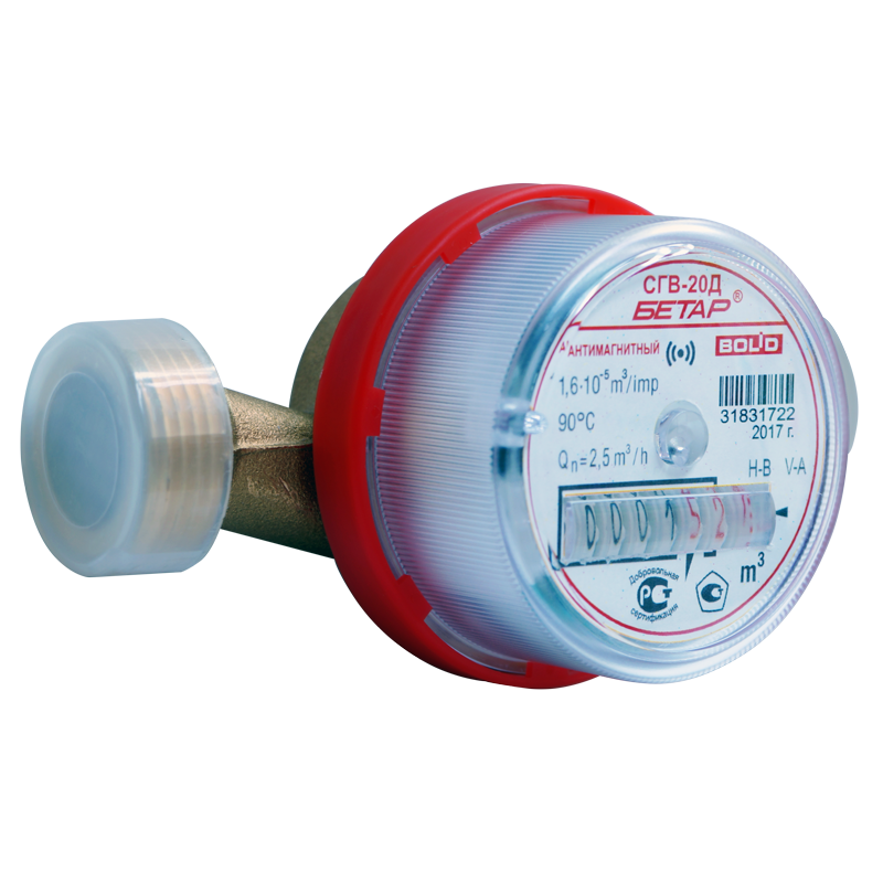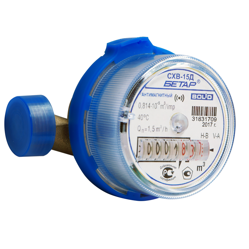 Счётчики расхода холодной воды (СХВ-15Д, СХВ-20Д) и горячей воды (СГВ-15Д, СГВ-20Д) антимагнитного исполнения с интегрированным радиоканальным модулем "Болид" "С2000Р-АСР1".