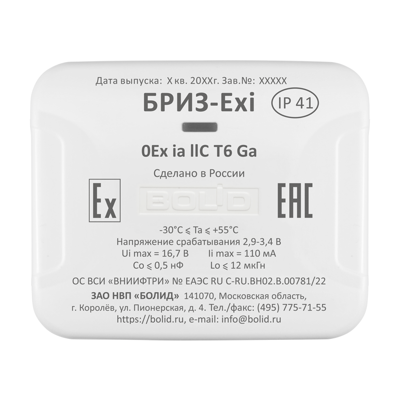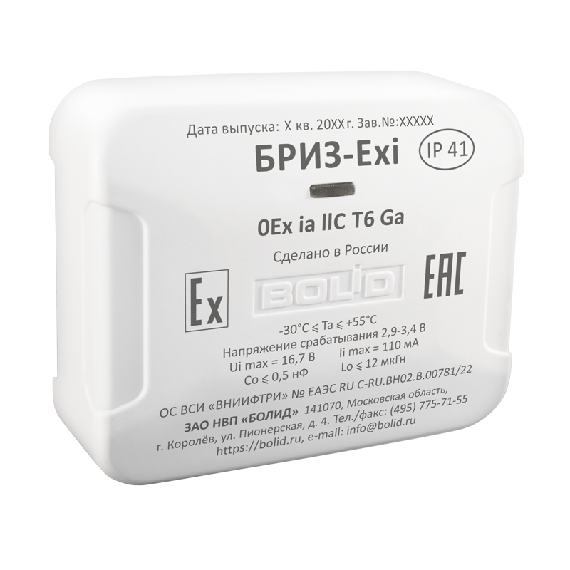 Блок разветвительно-изолирующий взрывозащищенный «Бриз-Exi» прменяется во взрывоопасных помещениях в искробезопасной двухпроводной линии связи контроллера «С2000-КДЛ», «С2000-КДЛ-2И», «С2000-КДЛ-2И исп.01» или «С2000-КДЛ-С» с целью изолирования короткозамкнутых участков с последующим автоматическим восстановлением после пропадания короткого замыкания.