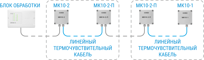 Монтажный комплект вводный МК10-2 АЦДР.426477.001 необходим для обеспечения герметичного подключения чувствительного элемента к блоку обработки посредством переходного кабеля. Коммутация между блоком обработки и МК10-2 осуществляется с помощью одножильного огнестойкого кабеля для систем противопожарной защиты с допустимым сечением жил: 0.5, 0.75 и 1.0 мм².