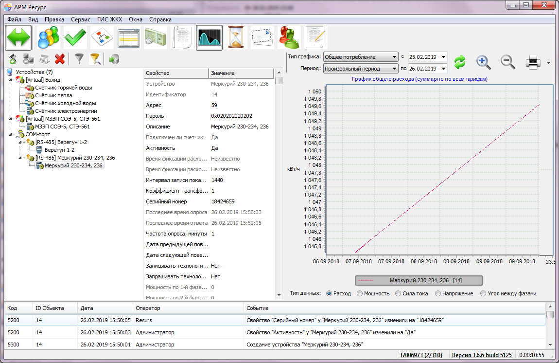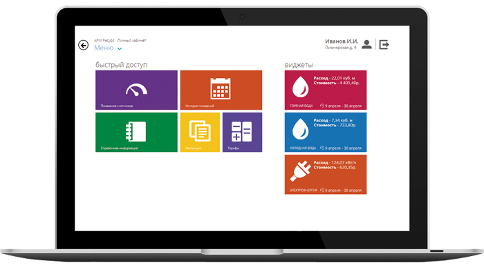 Простой, интуитивно понятный интерфейс, позволяет удобно работать с системой, просматривать показания и состояния счетчиков, печатать квитанции, следить за сведением баланса потребления ресурсов на объекте.