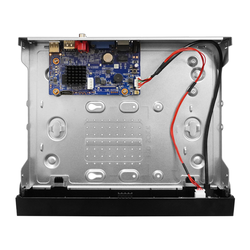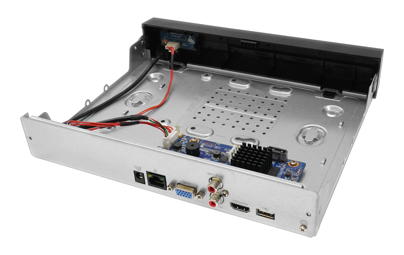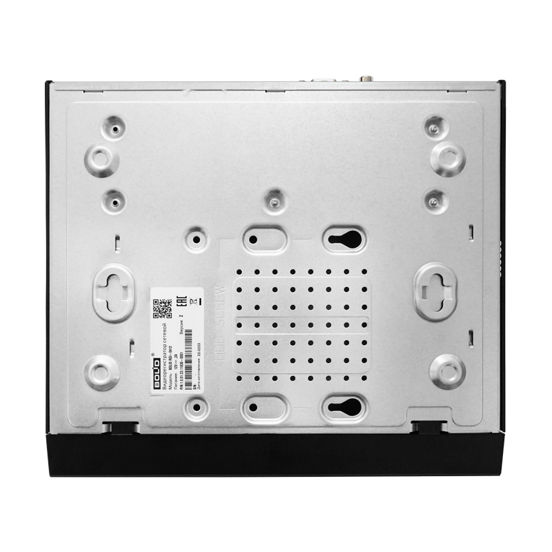 4 канала для сетевых камер, 1 порт для HDD, 1 HDMI порт для подключения монитора, 1 Ethernet порт, крепление в стойку. Рекомендуется для средних и крупных объектов с высокими требованиями к длительности хранения видеоархива