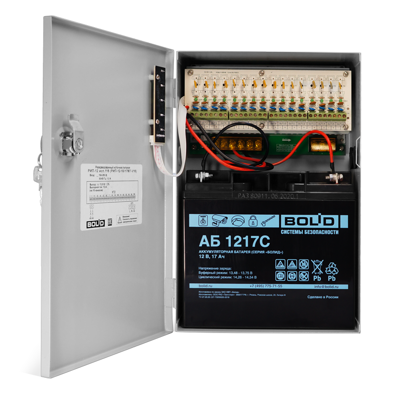 | Резервный источник питания – аккумуляторная батарея 12 В (свинцово-кислотная) | 17 (1 шт.) | |
