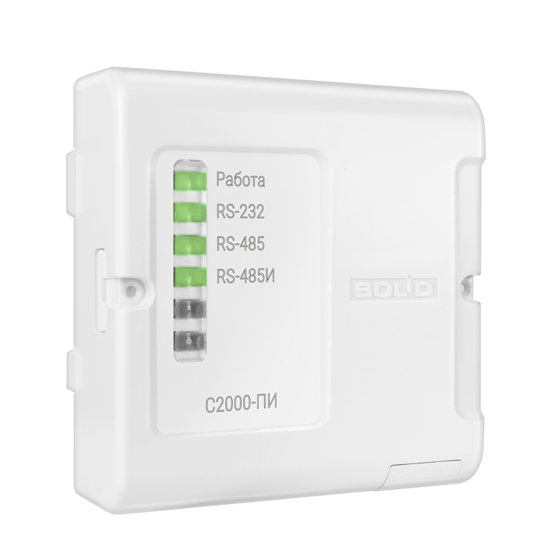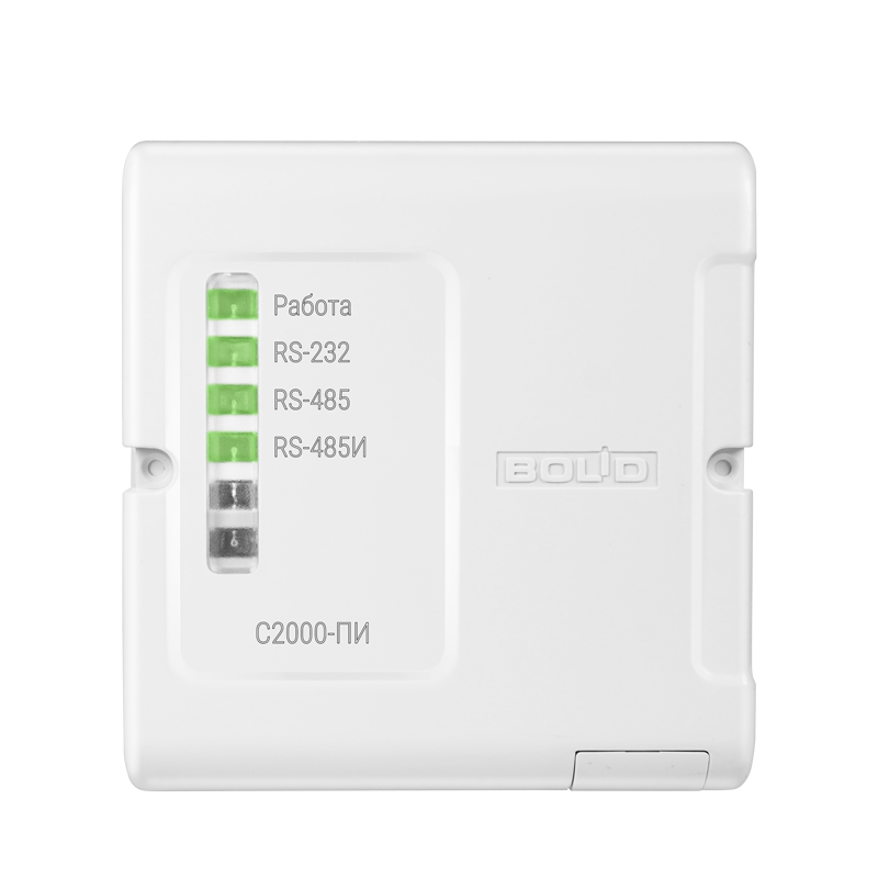 "С2000-ПИ" предназначен для гальванической изоляции и взаимного преобразования сигналов интерфейса RS-232 и сигналов двухпроводного магистрального интерфейса RS-485.