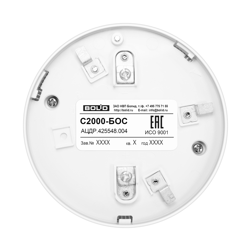 С2000-БОС сочетает в себе функции светового и звукового пожарного оповещателя и является базой (розеткой) для установки извещателей ДИП-34А-03/04/05, С2000-ИП-03, С2000-ИПГ и аналогичных по конструкции. Поддерживает различные маски управления оповещением. Световое и звуковое оповещения исполняются синхронно, С2000-БОС занимает один адрес в двухпроводной линии связи С2000-КДЛ. Оснащён изолятором короткого замыкания.