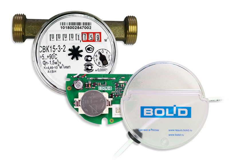 Универсальный счётчик холодной и горячей воды с модулем "Болид" СВК15-3-2-Б