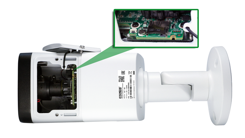 • Встроенный адаптер PoE для питания видеокамеры по кабелю сети Ethernet