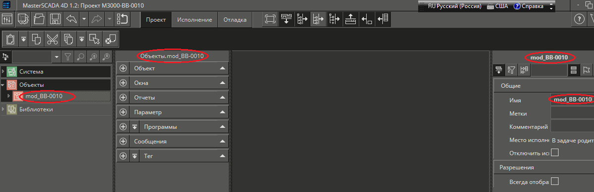 После добавления объекта в проект появляется объект с именем Объект 1, представленный на рис. 8а. Желательно, чтобы каждое имя объекта в проекте несло смысловую нагрузку. Назовём новый объект mod_ВВ-0010.Рис. 8а. Присвоение объекту имени.