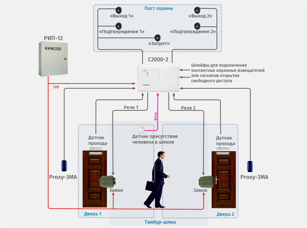 Интеграция СКД с системой охранно-пожарной сигнализации для комплексного решения задач безопасности. Обеспечение реакции охранной составляющей системы на попытки несанкционированного доступа, взлома дверей и т.д. Возможность автоматической постановки/снятия с охраны помещений по факту прохода в зону доступа сотрудника. Предоставление свободного доступа в случае возникновения пожара.