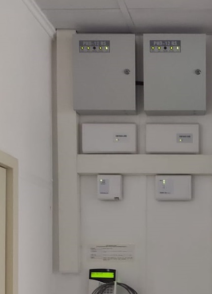 Произведён монтаж АПС и СКУД на базе оборудования "Сигнал-20П", С2000-4, С2000М, С2000-Ethernet и С2000-СП1. Помимо ручных пожарных извещателей использовались дымовые извещатели "ИП 212-141" и дымовые с двумя сенсорами "Сиф-2Д" (для контроля запотолочного пространства). Настроена разблокировка дверей при пожаре, которые контролируются СКУД. Произведена настройка C2000-Ethernet для подключения к будущему серверу "Орион Про"