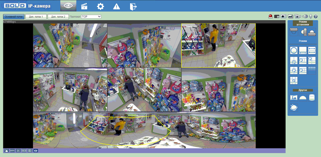 Очень часто для организации видеонаблюдения в бутике применяют сетевую купольную видеокамеру с объективом "рыбий глаз" (FishEye). Это действительно интересный экономный вариант с учетом возможностей такой видеокамеры.