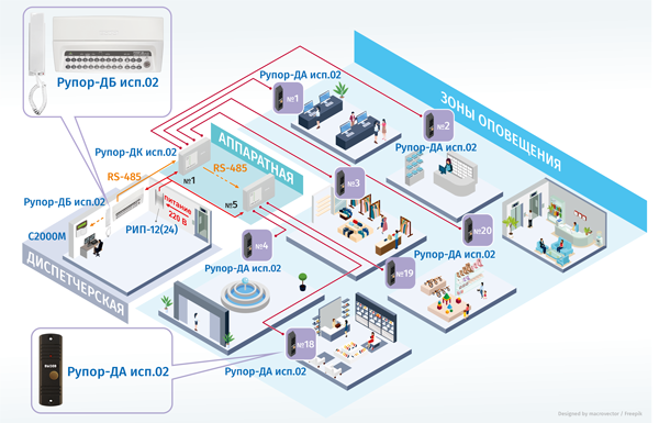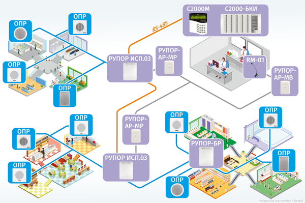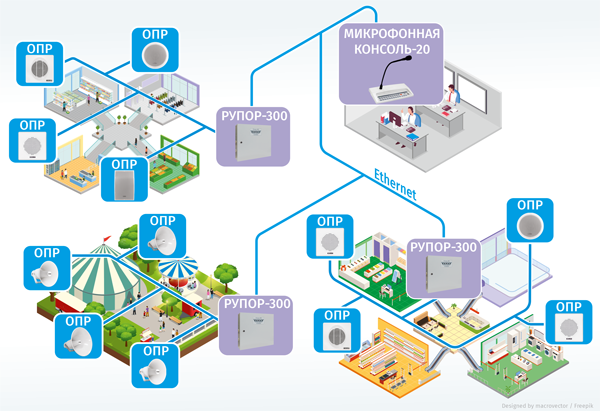 Рис.1. Система оповещения для больших объектов
